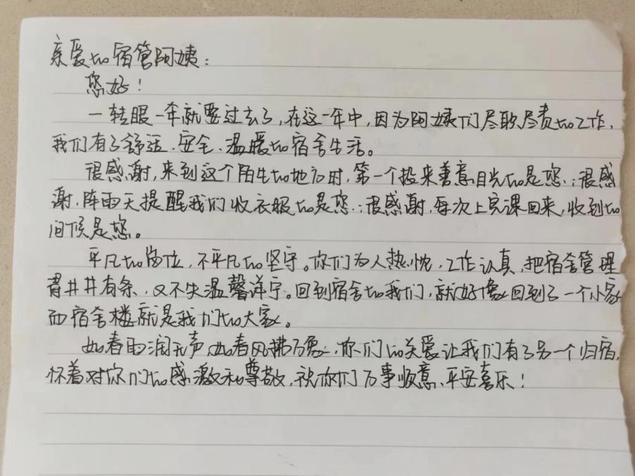 每年都有离别,每年都有不舍,回首过往,林林总总如昨昔。在这里,倾注了同学们的激情与希翼;在这里,充满了宿管阿姨的责任和关爱。同学们和宿管阿姨一起用实际行动在公寓这个“方寸之地”谱写着一幅幅温情画面。