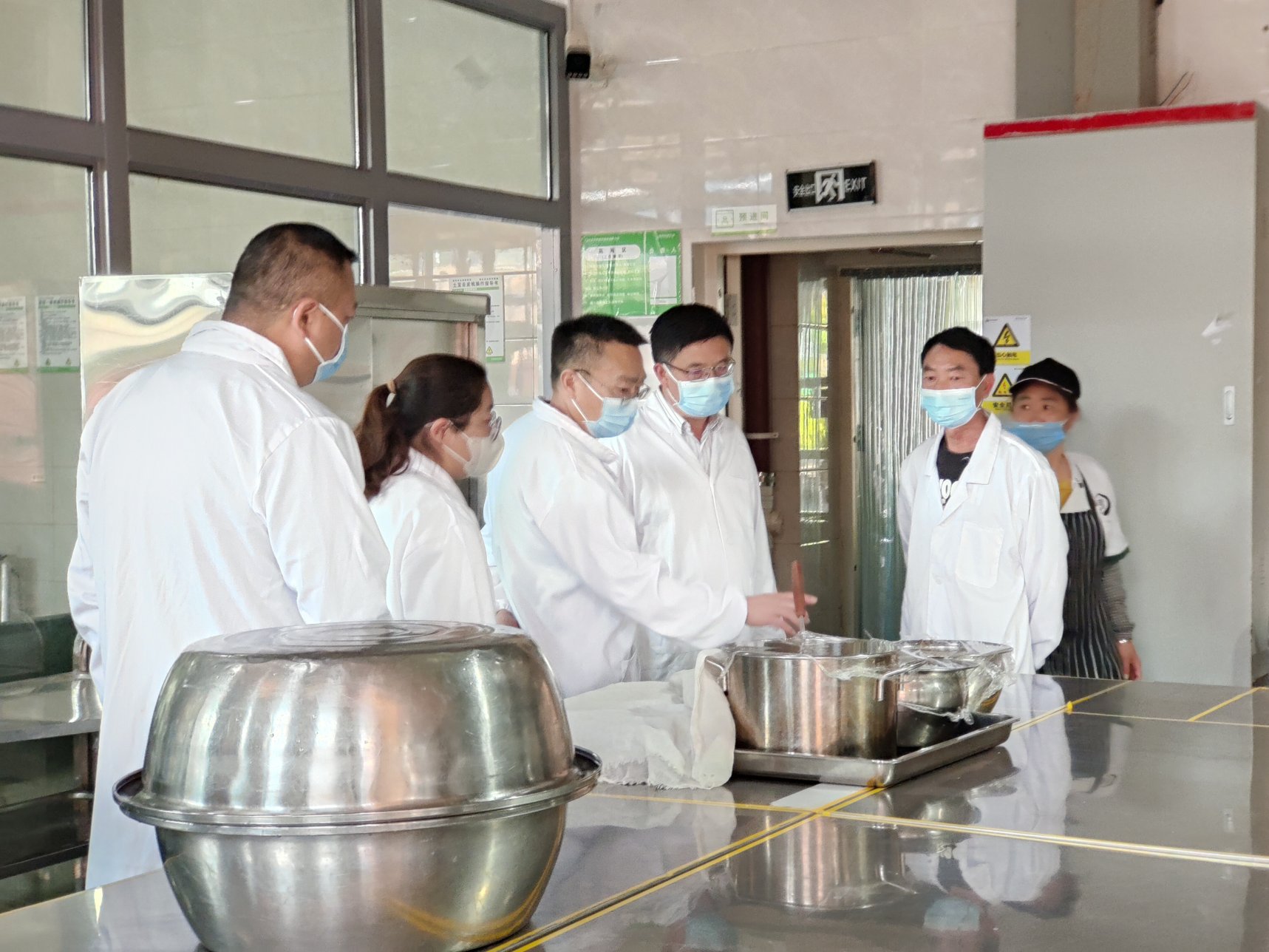 彭强一行重点对安宁校区各食堂管理制度健全、管理工作执行、场所物品清洁、设施设备运转、食品原料合规、从业人员健康、人员规范操作等七个方面的情况进行了排查。