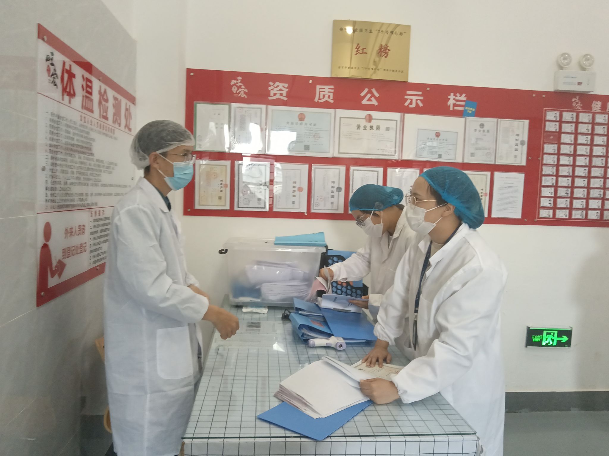 继安宁校区六个食堂于3月15日通过金方街道市场监督管理所初评小组开展的餐饮服务量化等级A级评定初评工作后,6月30日下午,市场监督管理局评审专家组到安宁校区开展2025年餐饮服务量化等级A级评定验收工作,安宁校区管理办公室餐饮管理科工作人员及食堂引入服务企业法人、项目负责人全程陪同,积极配合各项检查。