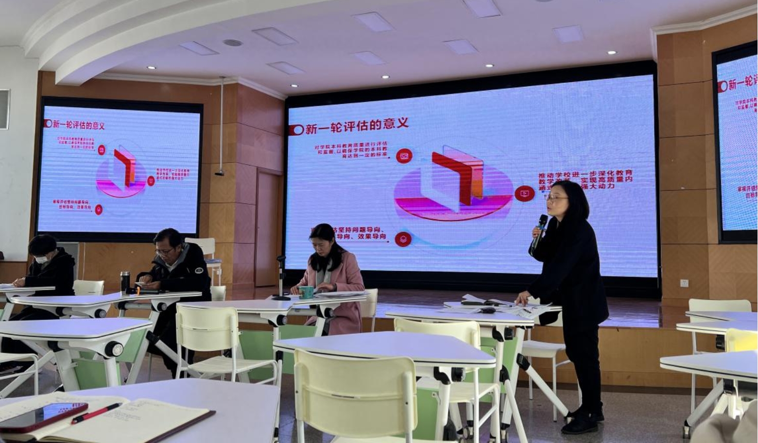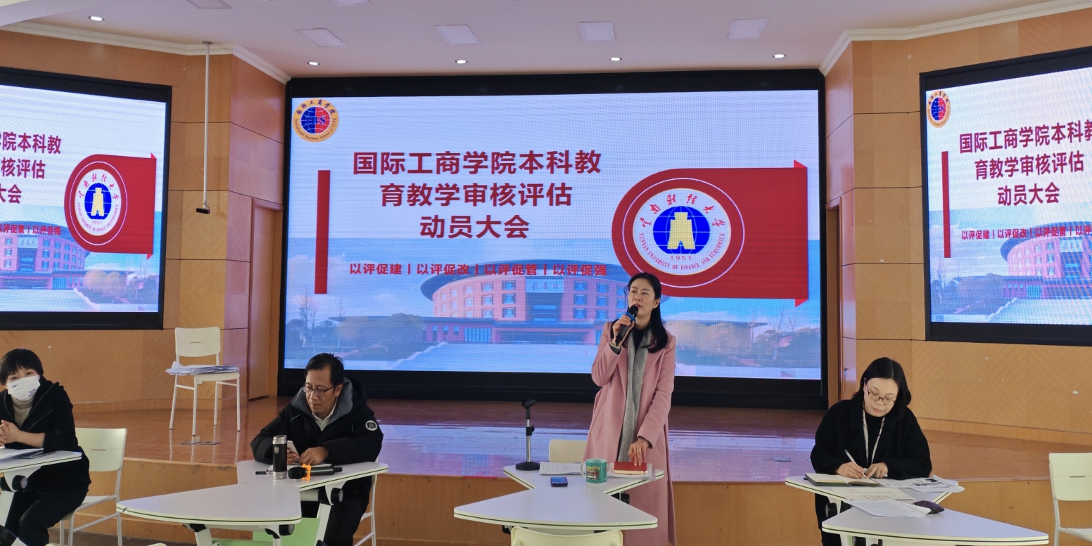 2024年1月9日下午,学院在国际报告厅成功举办了“国际工商学院本科教育教学审核评估动员大会”,全体教职工积极参与了本次会议。这次动员大会在激发团队凝聚力、提高教职工对评估工作的重视方面取得了显著的效果,为学院开展审核评估工作奠定了坚实基础。