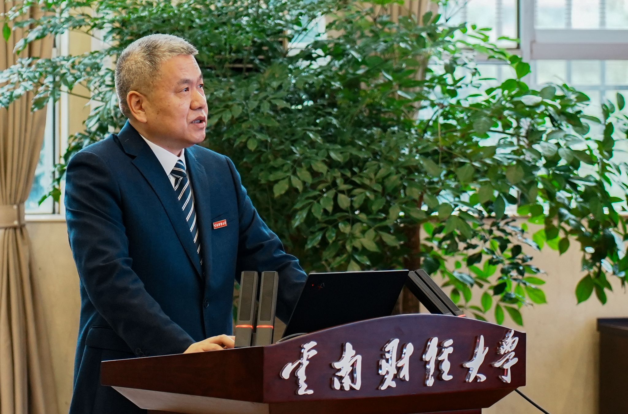 校党委副书记、校长王敏以“扎根云南,服务全国,着力培养复合型创新型经世致用人才”为主题,从学校发展情况、人才培养情况、自评自建情况、特色发展情况、未来展望等五个方面对学校本科教育教学工作进行汇报。他表示,学校将以“自强不息、敢为人先”的云财精神为引领,持续改革、不断创新,着力培养高素质经世致用人才,希望各位专家指出不足,帮助学校实现更好的发展。