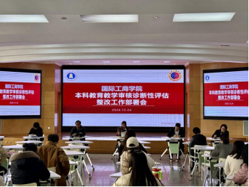 为认真贯彻落实学校本科教育教学诊断性评估整改工作部署要求,国际工商学院于12月24日下午在国际报告厅召开整改工作部署会。会议由副院长张俊婕主持,学院领导及全体教职工参会。