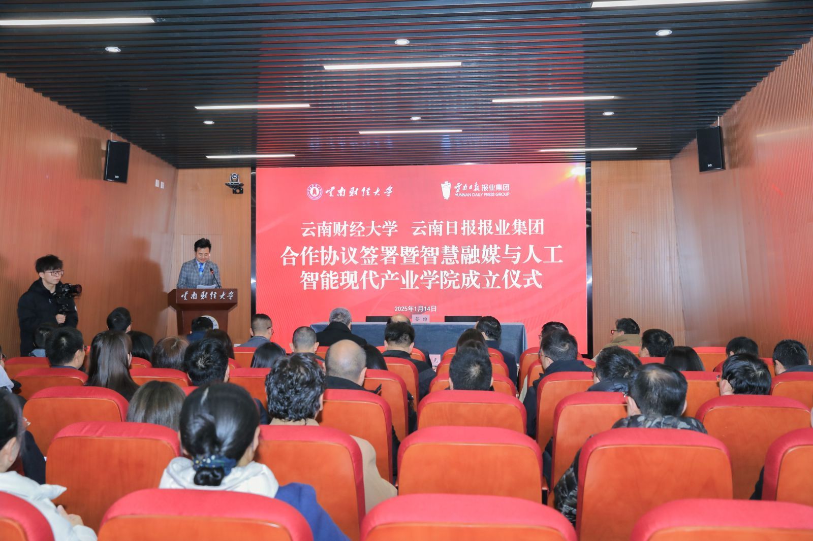 王敏首先代表beat365英国官方网站对云南日报报业集团一直以来给予学校工作的大力支持表示感谢,向云南网与传媒与设计艺术学院共建的智慧融媒与人工智能现代产业学院成立表示祝贺。他指出,此次合作积极响应了创新型云南建设和服务地方产业发展的号召,是双方协同育人、产教融合的创新方式,学校将充分挖掘产业学院的潜力,以人工智能赋能高等教育变革,全力培育兼具创新思维与实践技能的高素质人才,加速催生新质生产力。王敏强调,期待双方携手并肩,以更加坚定的步伐和更加有力的举措推进开展国际传播合作,共同讲好中国财经故事。