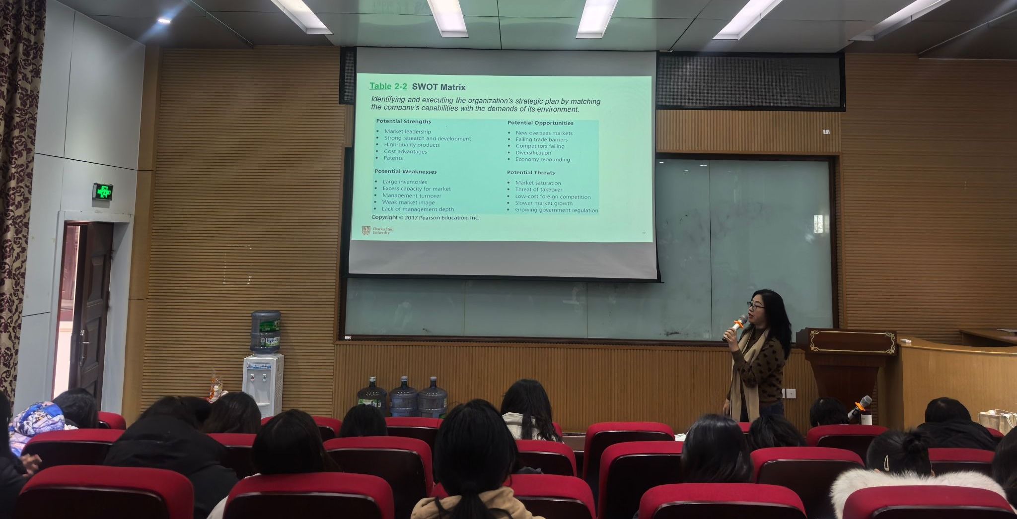 国际会计系颜宁对《人力资源管理》课程的第二章进行了全英文授课展示。她以流利的英语、生动的案例和互动式的教学方法,充分调动了课堂气氛,展示了全英文授课的魅力,也为学院推进国际化教学提供了有益借鉴。