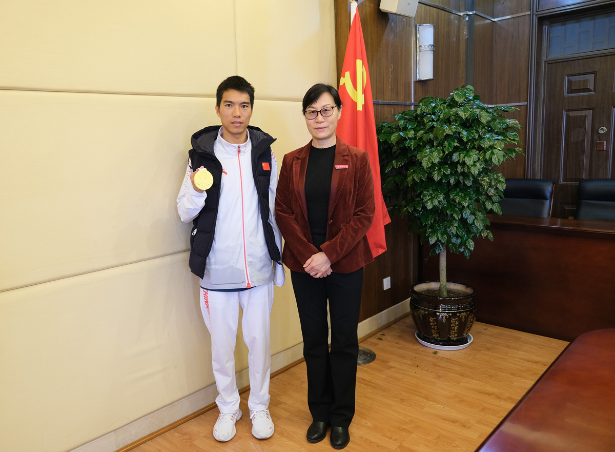 10月30日,参加完第十四届全国运动会和全国第十一届残运会暨第八届特运会,斩获两金一银一铜的beat365杰出校友李朝燕回到母校,与师生面对面交流。此前,他在刚刚结束的2021年东京残奥会上以2小时25分50秒的成绩蝉联男子T46级别马拉松冠军,并打破该级别赛事残奥会纪录。