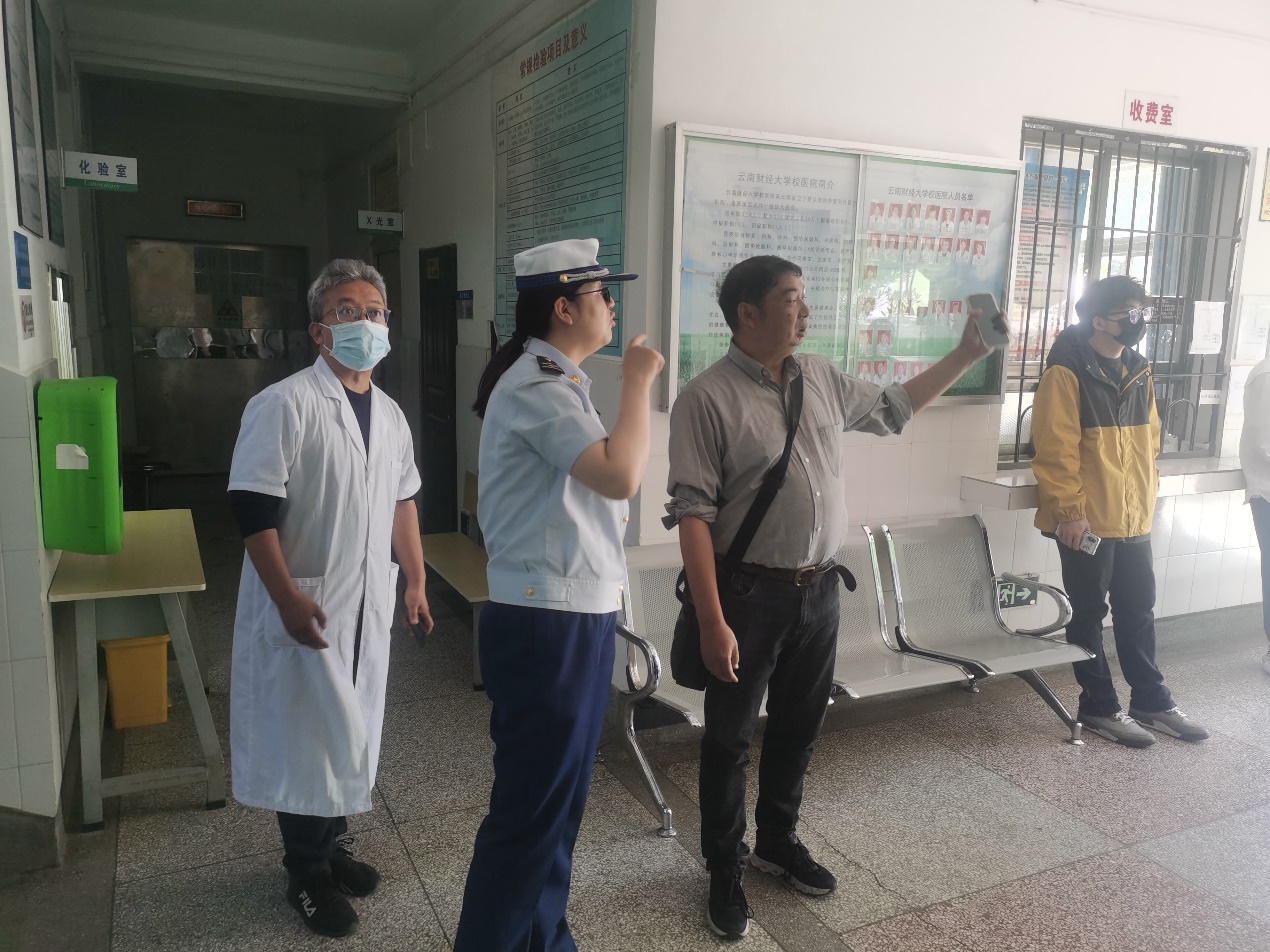 为深刻汲取北京长峰医院火灾事故的教训,彻底排查消防安全隐患,防范和遏制重大火灾事故。5月17日,保卫处联合五华区消防救援大队对龙泉路校区校医院进行了消防安全专项检查。检查人员对医院门诊部、办公区等区域的疏散通道、安全出口是否畅通,消防设施是否存在遮挡,消防器材是否完整有效,应急照明和安全指示灯是否完好有效和易燃易爆物品存放仓库是否使用可燃材料搭建等进行了仔细检查、重点查看,了解消防安全责任制和应急预案落实情况。
