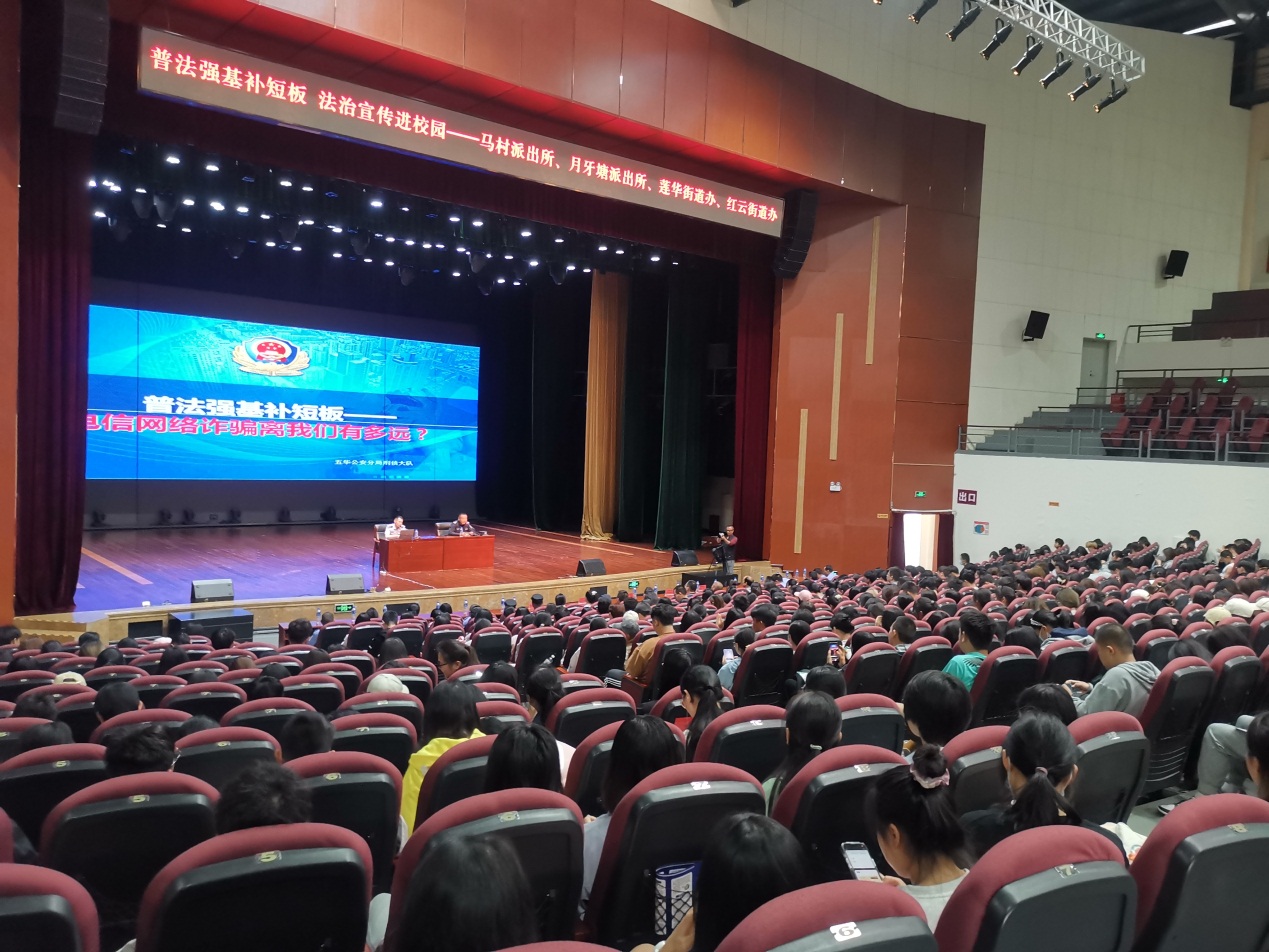 为加强学生防范电信诈骗和网络诈骗的意识,预防学生财产安全受到侵害,5月12日下午,五华公安分局刑侦大队(五华区反诈中心 )五中队中队长何磊警官应邀到校开展防范电信诈骗的安全教育讲座。昆明市公安局五华分局刑侦大队、马村派出所、月牙塘派出所、五华区莲华街道司法所、综治办、红云街道综治办、五华区检察院、五华区自然资源局相关负责人,beat365学生处、保卫处干部职工及学生共1000余人参加讲座。