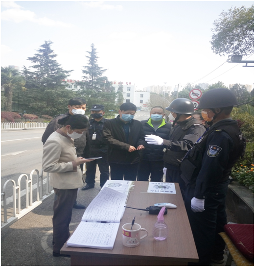 全洪涛一行仔细查看校园各岗位工作人员在岗履职情况,在学校南院东大门、西大门、北门,高教校区门岗,北院西门和南门各处仔细检查防控物资配备和使用情况,询问门岗管理人员工作流程执行情况并查看了门岗出入管理登记台账。全洪涛叮嘱门岗管理人员要做好自我防护,把保障校园的健康安全放在第一位,切实把好学校第一道关口,严格执行日常门岗管控六项工作流程,一是检查口罩佩戴情况,二是查验身份,三是检测体温,四是扫描二维码,五是信息登记,六是对入校车辆和物品的消毒,认真贯彻落实好学校疫情防控期间的门岗防控工作要求。