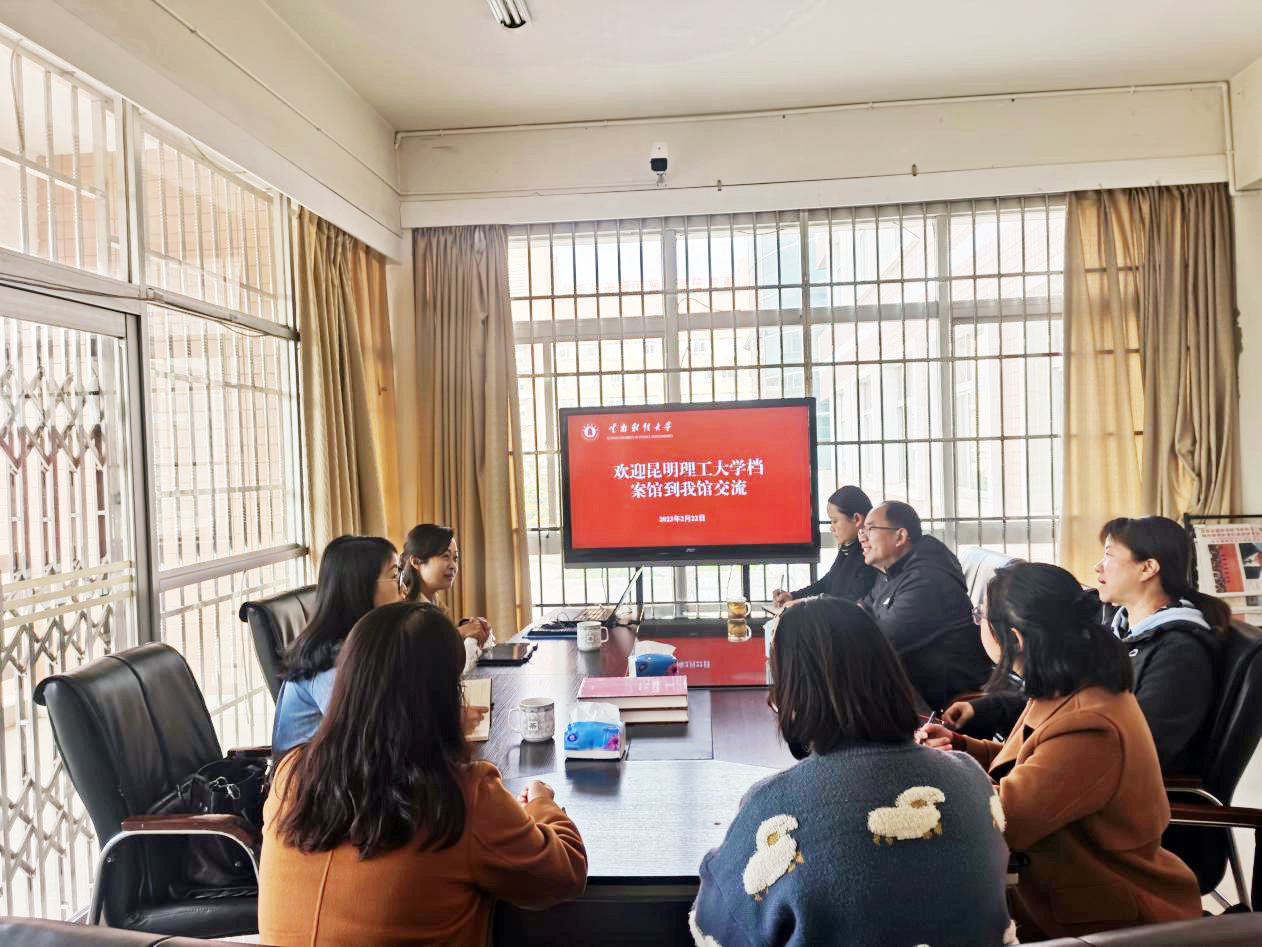2月22日上午,昆明理工大学档案馆周荣馆长一行到beat365档案馆就档案管理、校史编研、数字化档案馆开展调研交流。