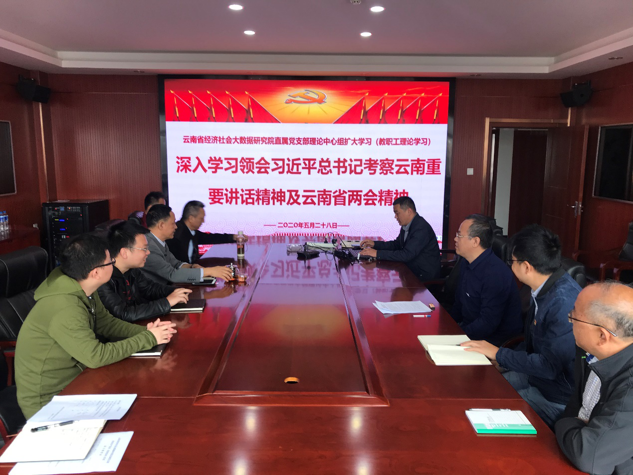 2020年5月28日,大数据研究院开展“深入学习领会习近平总书记考察云南重要讲话精神及云南省两会精神”理论学习中心组专题学习暨教职工理论学习活动。研究院直属党支部书记余建坤主持本次学习,理论学习中心组全体成员、研究院全体教职工参加本次学习活动。