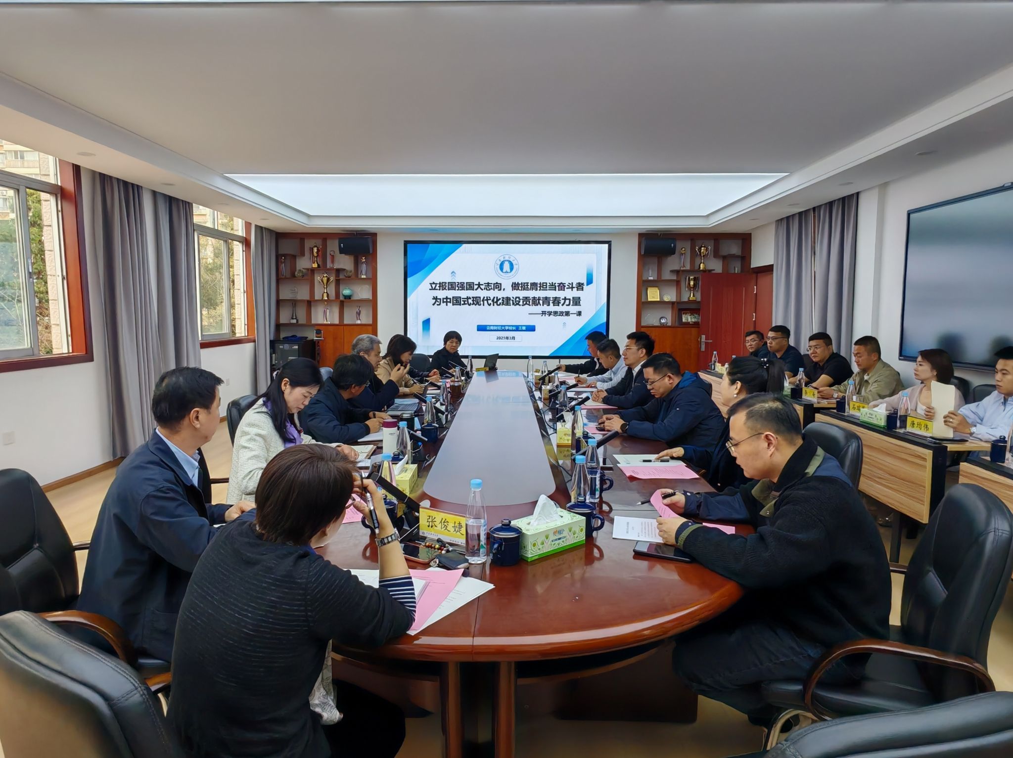 3月14日下午,学校党委副书记、校长王敏以《立报国强国大志向,做挺膺担当奋斗者——为中国式现代化建设贡献青春力量》为题为国际工商学院师生代表讲授2025年春季学期“开学思政第一课”。
