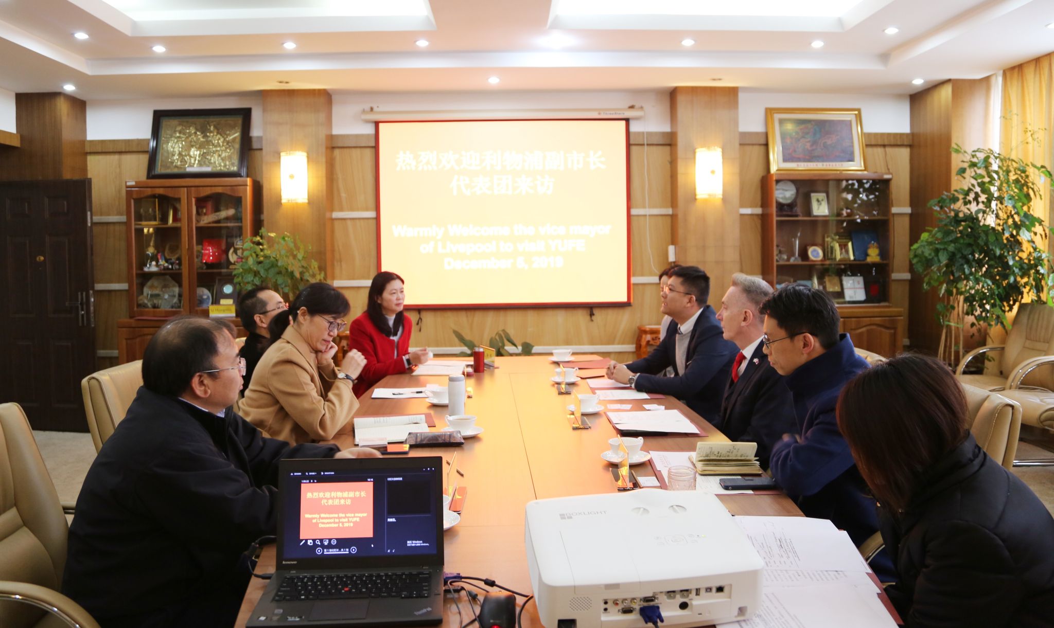 12月5日上午,英国利物浦市副市长Gary Millar,利物浦约翰摩尔大学中国事务官员邵晓春一行到访beat365。beat365英国官方网站党委书记王建颖、副校长殷红会见来宾并进行了亲切友好的会谈。