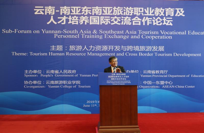 6月11日,由云南省人民政府主办、云南省教育厅承办的第二届云南—南亚东南亚教育合作论坛在昆明海埂会堂举行。校长伏润民应邀出席开幕式、主持主论坛并在“云南-南亚东南亚旅游职业教育及人才培养国际交流合作分论坛”上致辞。