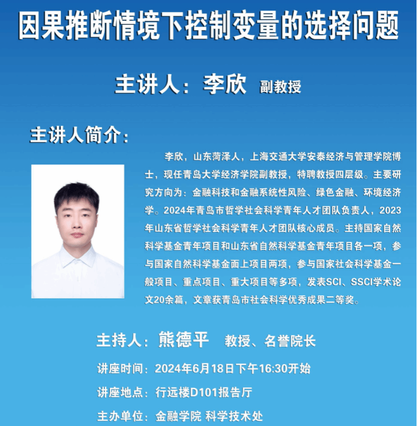 Li Xin, originally from Heze, Shandong Province, holds a Ph.D. from the Antai College of Economics and Management at Shanghai Jiao Tong University. He is currently an Associate Professor and specially appointed professor (fourth level) at the School of Economics, Qingdao University. His primary research areas include fintech and financial systemic risk, green finance, and environmental economics. He is the head of the Youth Talent Team for Philosophy and Social Sciences in Qingdao City in 2024 and a core member of the Youth Talent Team for Philosophy and Social Sciences in Shandong Province in 2023. He has led one youth project of the National Natural Science Foundation of China and one youth project of the Shandong Natural Science Foundation. He has participated in two general projects of the National Natural Science Foundation of China and has been involved in multiple general, key, and major projects of the National Social Science Fund. He has published more than 20 academic papers in SCI and SSCI journals, and his work has received the second prize for outstanding social science achievements in Qingdao.