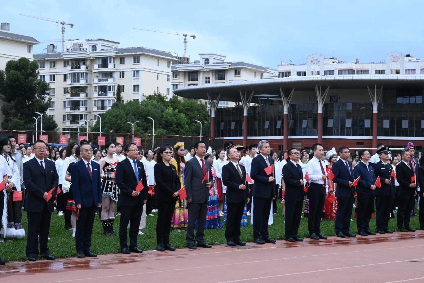 History witnesses the magnificent journey, and time engraves the footprints of struggle. On October 1, 2024, to celebrate the 75th anniversary of the founding of the People's Republic of China, Yunnan University of Finance and Economics held flag-raising ceremonies simultaneously at both Longquan Road campus and Anning campus. University leaders and over 2,000 faculty and student representatives participated.