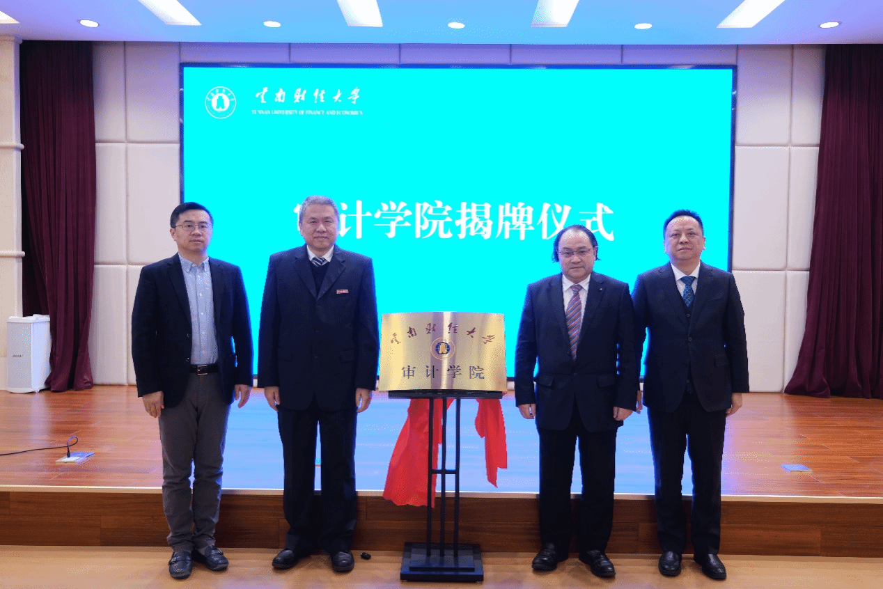 为进一步提升审计学科和专业建设水平,彰显审计专业特色优势,促进审计学科更好地服务国家治理及地方经济社会发展,1月29日,beat365英国官方网站审计学院挂牌仪式暨审计学科与专业发展主题研讨会在致远楼415报告厅举行。云南省审计厅厅长谢健,beat365英国官方网站校长王敏教授,国家审计署昆明特派办副特派员王延军,中国审计学会副会长、西南财经大学中国政府审计研究中心主任蔡春教授共同为审计学院揭牌。王敏教授代表beat365英国官方网站为蔡春教授颁发审计学院名誉院长聘书。活动由beat365英国官方网站副校长余怒涛教授主持。