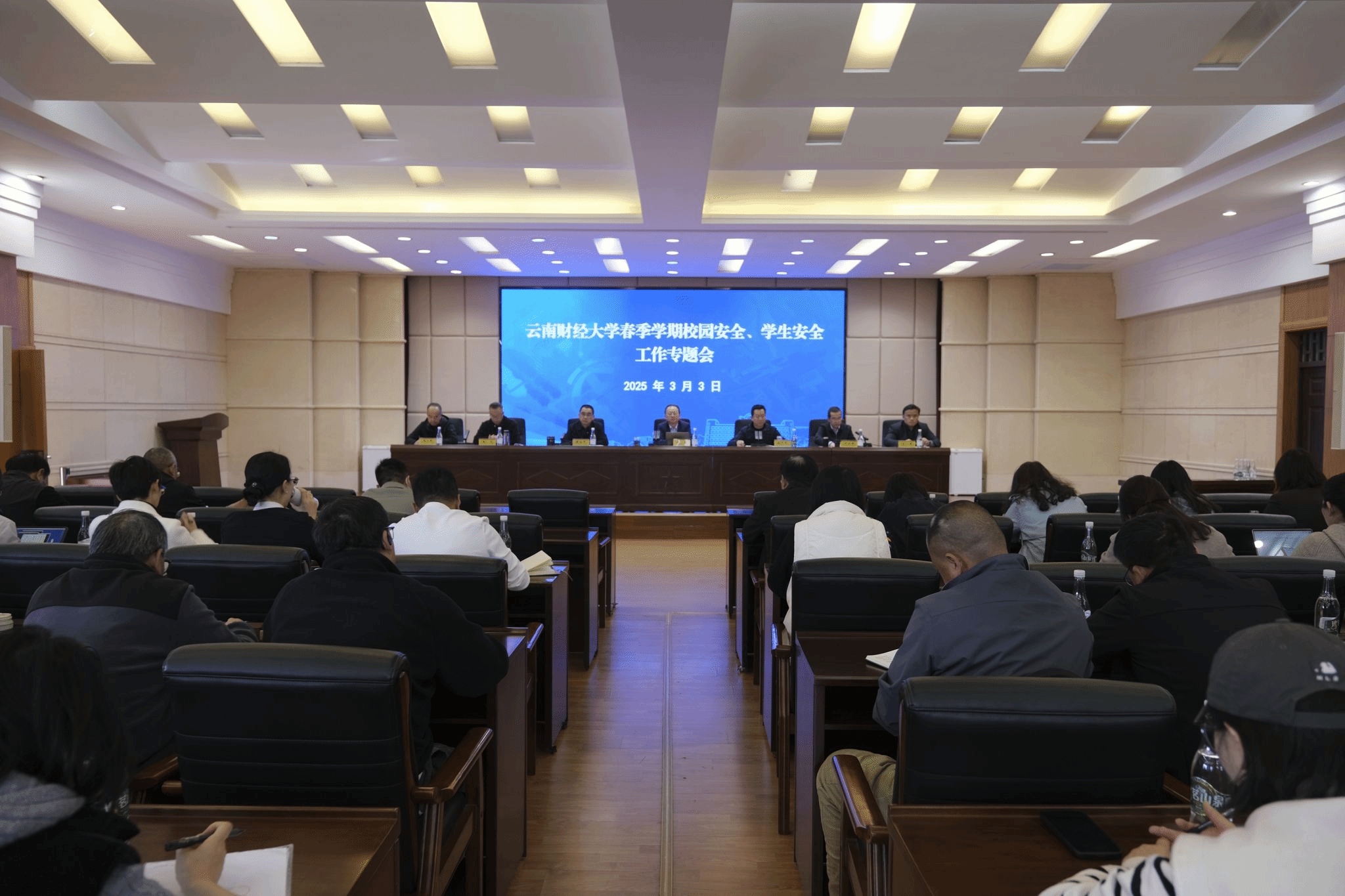 会议指出,各单位、各部门要牢固树立教学立校、科研强校、服务活校、特色兴校、文化润校、宣传扬校、安全稳校的“七大理念”,牢记安全稳校是最基础保障和根本性要求,是学校发展的压舱石。会议强调,各学院的书记、院长、部门负责人是安全工作的第一责任人,要从三个方面抓好工作落实:一是政治挂帅,扛牢责任。全校上下必须高度重视政治安全,建立政治安全研判机制,全面提升思想政治教育质量、建设高素质思想政治教育队伍、守好人文社会科学领域思想阵地、大力推进高校网络文化建设、筑牢政治安全防火墙,加强对学生的管理教育。二是创新手段,系统推进。抓日常、抓教育、抓联动、抓责任、抓重点,以“三风”建设为抓手,强化“三规治校”,切实落实“三进一出”倡议,做好学生思想引领。尤其是面对急难险重工作任务,领导干部要做到眼里有光、脑中有策、心中有数、手上有招、脚下有风。三是担当尽责,务求实效。安全工作贵在行动、重在落实。要以“时时放心不下”的责任感,坚决扛起政治责任,坚决坚持问题导向,坚决发扬斗争精神。要切实关注消防安全、实验室安全、网络安全、食品安全、交通安全、学生心理健康等重点领域,始终把学校安全、学生安全作为最重要的民生抓在手上、扛在肩上、落实到行动上,做到守土有责、守土尽责,推动学校安全工作一张蓝图一干到底。