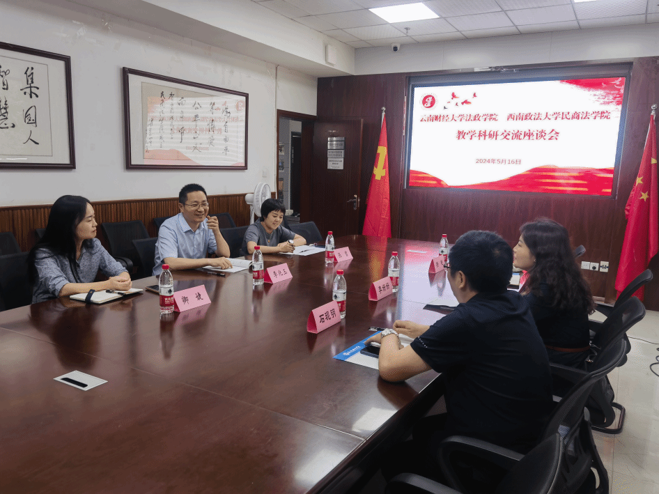 在经济法学院和民商法学院调研中,大家参观了学院党建工作长廊,并围绕人才培养、学科专业建设、党建工作、学生管理、就业工作、人才引进等方面进行了深入交流和学习,并就双方进一步的深入合作达成了初步共识。