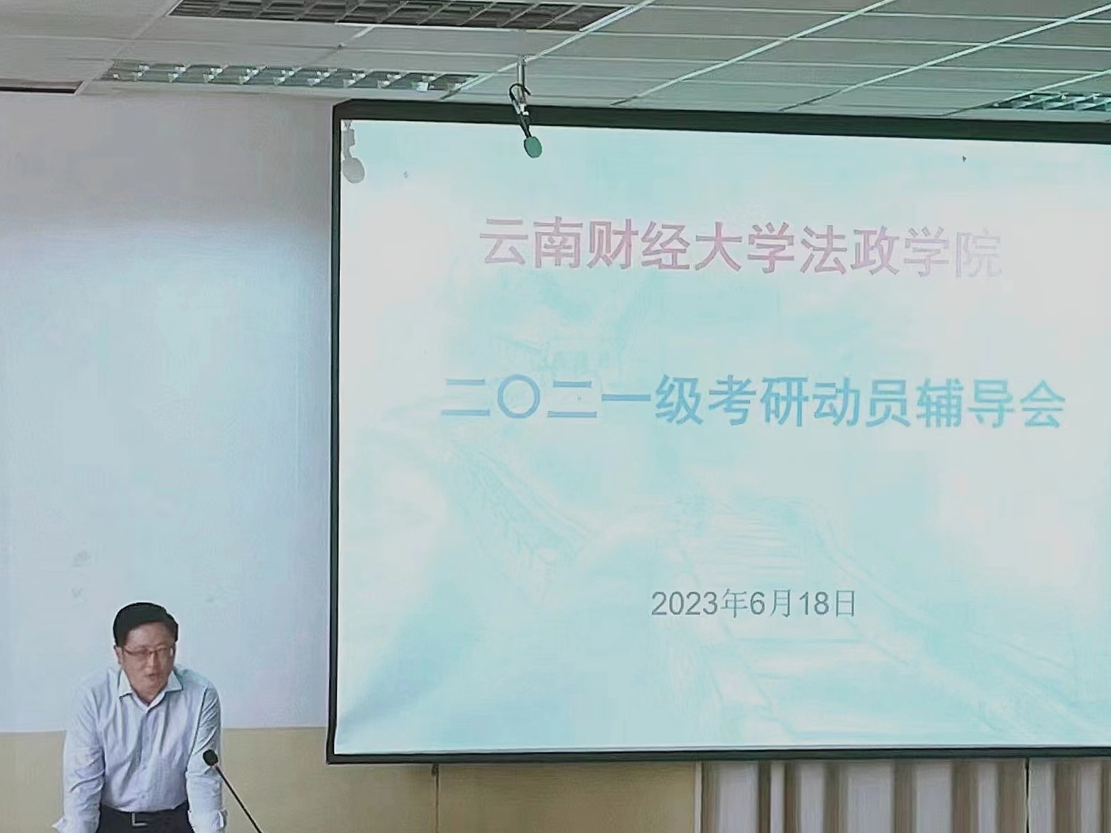 在深入开展学习贯彻习近平新时代中国特色社会主义思想主题教育之际,法政学院为了切实提高研究生报考率和录取率,提升本科人才培养质量,提早动员引导学生确立考研目标和做好考研准备,并结合学院学风整顿的举措,于2023年6月18日在凌云楼南附301阶梯教室召开2021级考研动员辅导会。动员辅导会由党委副书记张吟竹主持并做动员,院长石现明出席并做辅导。2021级各班班主任、辅导员和有初步考研意向的学生200余人参加。
