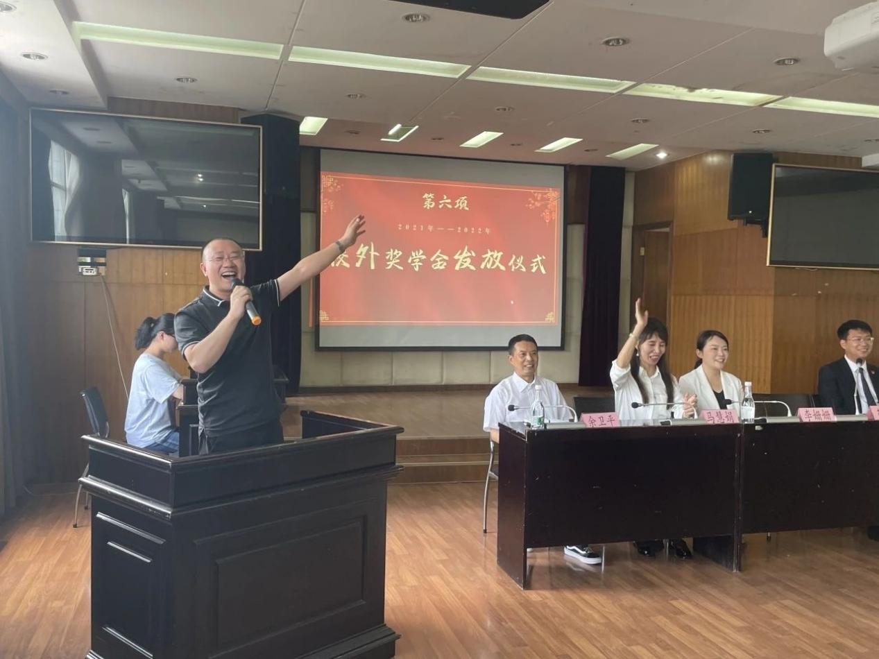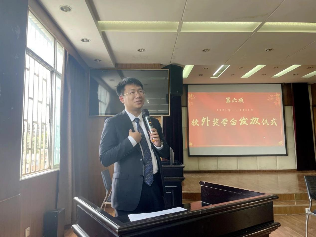 仪式上,资助方代表范培红律师和刘扬诗书律师先后发言勉励同学们。“心存感恩,知行合一”,范培红律师将此八字送给了在座的同学,希望同学们在此后的人生道路上一以贯之,如此才能在辽阔的宇宙中实现壮阔的人生。此外,初心、情怀和操守也须牢记心中,希望同学们可以保留学法的初心,坚守法律人的法律情怀,秉持求真务实的作风,脚踏实地一步一个脚印地实现自己的人生理想。