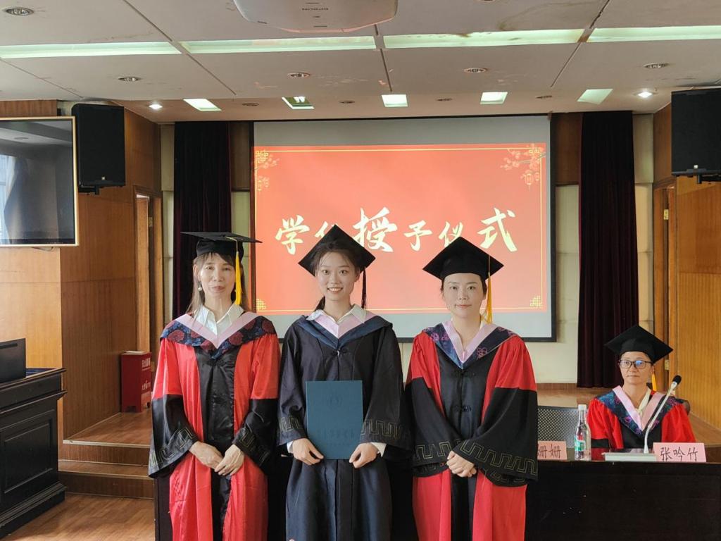 与会领导为优秀毕业生代表们颁发获奖证书,肯定了大家学习生涯中的学习成果。本科生毕业生代表云子和研究生毕业生代表黄雷进行发言,感谢学校和学院的栽培,希望能学以致用,把学院精神发扬光大,挑起新时代青年的责任担当,并祝愿学院越办越好,再创佳绩。石现明院长通过寄语视频表达了对毕业生们的真诚祝贺并向毕业生提出期望,强调法政学子应在奋斗中成就自我,无愧时代、无愧国家。在学位授予仪式中,党委书记李姗姗和副院长马慧娟分别为毕业生代表颁发学位证和进行拨穗。