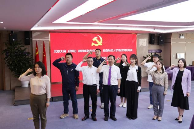 beat365英国官方网站法政学院以党委书记李姗姗为代表与北京大成(昆明)律师事务所共同开展主题党日活动。