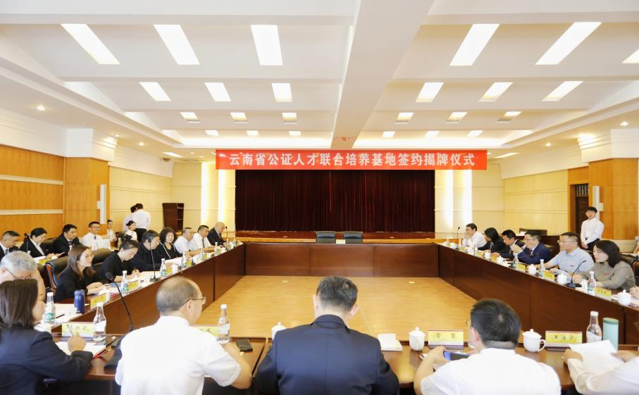 法政学院与云南省公证协会的代表签署了《云南省公证人才联合培养基地协议》并进行了云南省公证人才联合培养基地的揭牌。法政学院还与12家公证处签署了《协同育人及共建实践教学基地协议》。