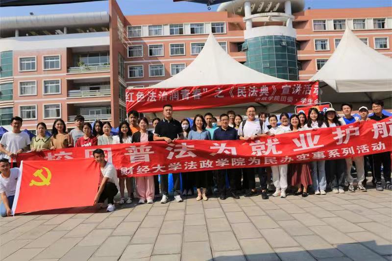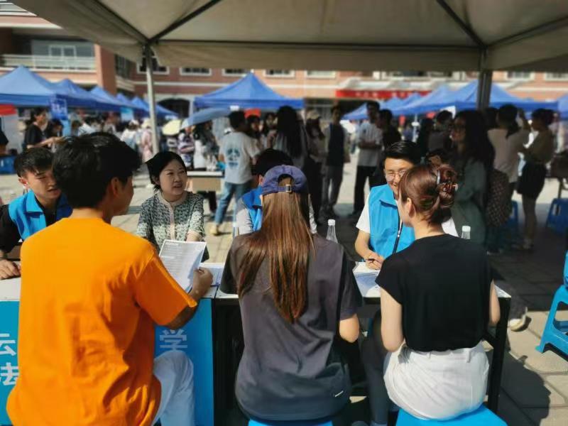 为进一步增强广大毕业生的法律意识和维权意识,法政学院5月10日在新阳广场开展我为群众办实事之“校园普法为就业护航”活动,为毕业生提供更精准的法律服务。本次活动将“普法”与求职紧密结合,以联动普法的方式,助力“云南省2023届财经文旅商贸类高校毕业生专场招聘会”。法政学院领导班子成员、领导干部、党支部书记、组织员和师生党员参加了此次活动。