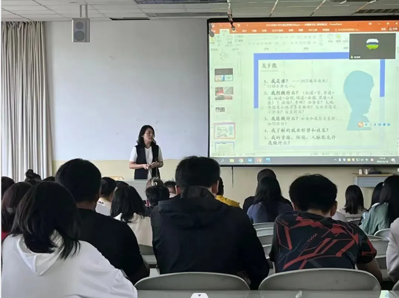 李姗姗首先就2023年应届生面对的就业大环境展开分析,强调当前机遇与困难并存。随后她向同学们介绍学院帮助毕业生实现就业的具体措施,并提出几点要求:一是要树立“先就业,后择业”的就业观念,用好“24365”等就业平台积极寻找就业岗位,把握就业机会积极就业;二是杜绝消极等待心理、盲目攀比心理、就业期望过高等求职心理误区;三是及时签订三方协议、就业协议保障自身就业权益;四是已落实就业去向的同学要及时上报去向信息。最后,她叮嘱毕业生们“就业要趁早,简历要做好,面试多跑跑,毕业要确保”,并表达了对毕业生的美好祝福。