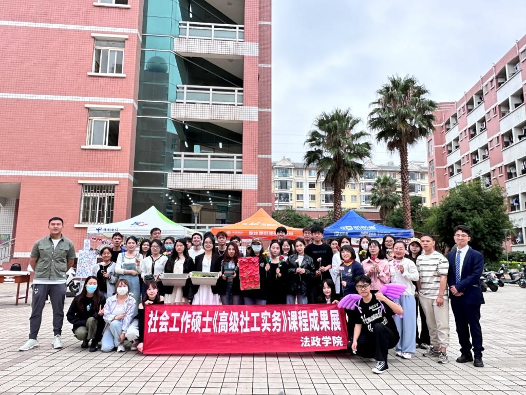 社会工作硕士《高级社工实务》课程,自2019年度开设以来,一直使用服务学习的教学方法,学生分小组选择社区服务议题,从问题识别、服务方案制定到服务开展和评估,在服务社区中,提升社会工作专业价值、知识和技巧。基于该课程,本学年,任课教师孙国嫄获校级教学研究项目“基于服务学习理念的社会工作专业硕士人才培养路径研究”立项;同学们立足财大社区,设计了三个主题的服务,分别是为财大基层女工提供关爱和倡导服务,为学生提供健康恋爱观提升以及针对师生的生态环保意识提升活动。为了展示课程成效和特色,助力共建和谐法治校园,法政学院团委组织开展课程社区服务成果展,社会工作专业22级学生与师生们现场互动讲解服务学习过程,带动激励更多的同学们参与到高校社区服务中来,宣传了社会工作助人自助价值理念,形成了“有困难,找社工”的号召。