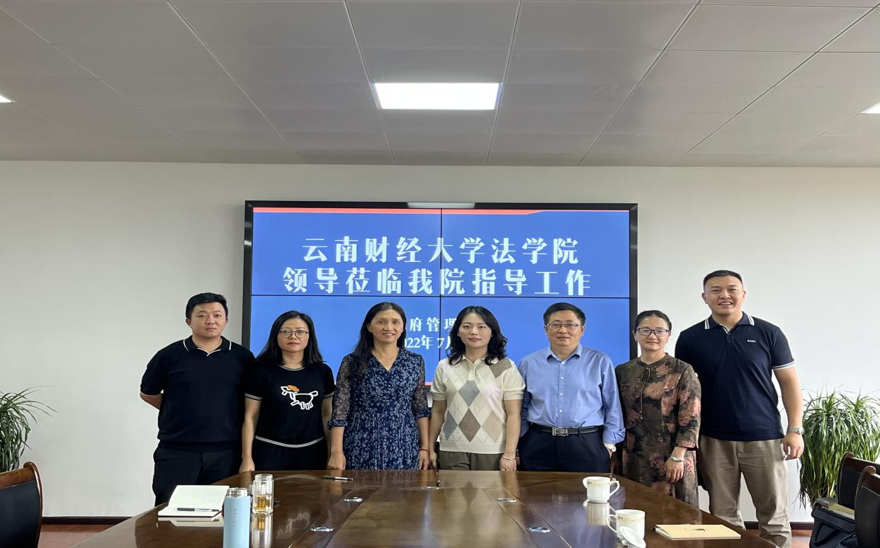 为加强法学院党建工作、专业建设,提高人才培养水平,7月20日,法学院党委书记李姗姗、副院长石现明、教师张吟竹、团委书记李浩一行来到保山学院开展调研交流工作,保山学院政府管理学院党委书记张吟梅、党委副书记王琪、党政办公室主任徐炜然等参加了交流会。