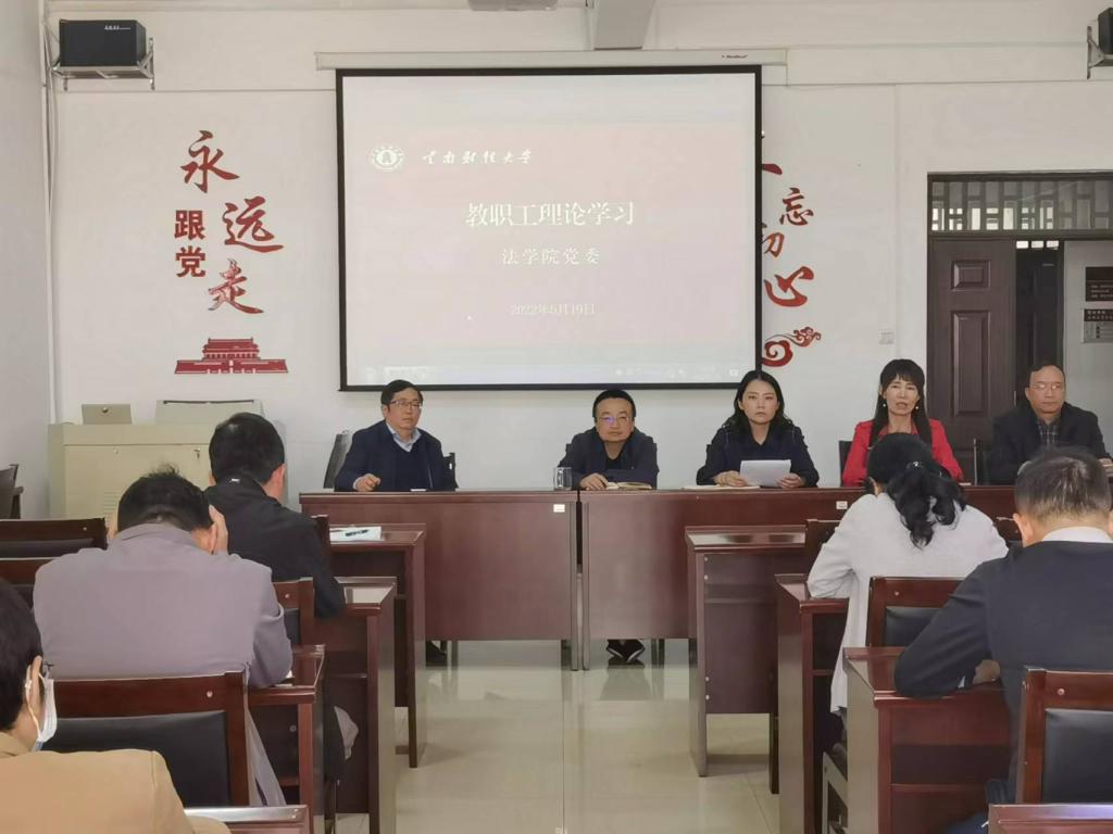 5月18日下午,法学院党委理论学习中心组在博远楼303会议室开展专题学习,深入学习贯彻习近平总书记在中国人民大学考察时的重要讲话精神和给北京科技大学老教授的回信精神,以及习近平法治思想,学院党委书记李姗姗、副院长石现明分别领学。