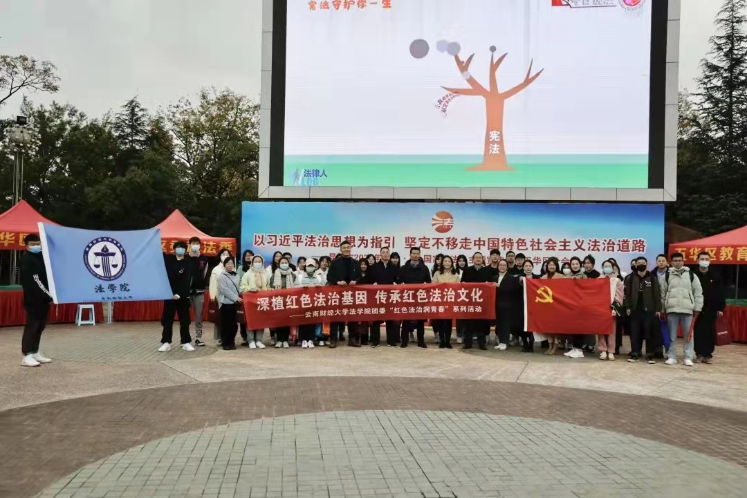 beat365英国官方网站法学院参加昆明市12·4国家宪法日主题宣传活动五华区分会场,协助参展单位进行宪法宣传和法律知识普及,贡献法学青年的青春力量,营造浓厚的宪法学习宣传氛围。法学院党委开展“我为群众办实事,宪法宣传勇担当”的活动,学院志愿者们在公园内张贴了宪法主题的宣传海报、标语等,并开展面对面的法律服务和宪法宣传。学院党委书记李姗姗、团委书记李浩以及学院教师纷纷来到现场,与同学们一同开展宣传活动,对志愿者的准备工作和活动效果予以充分肯定。