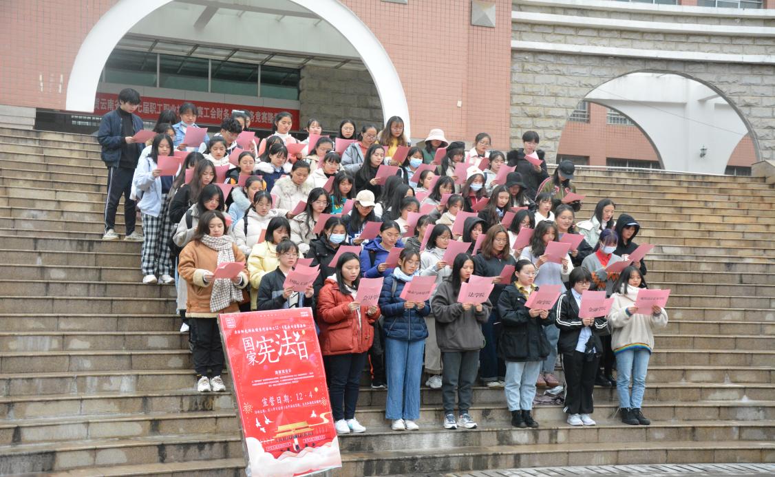 此次12·4宪法日“誓法”活动由法学院学生代表与全校各学院同学代表共100余人集体跟诵誓词,向宪法宣誓,既是一种荣誉,更是一份责任。以此次宪法宣誓为契机,深入学习宣传习近平法治思想,大力弘扬宪法精神,以宣誓形式来激励广大青年学生牢记誓言誓词,自觉做到忠于党、忠于祖国和人民,坚定理想信念。
