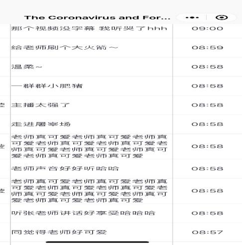 今天的课程结束了,我觉得自己甚至有点喜欢上了线上教学。毕竟,实体课堂中不会有人给你送花,不会有人大声为你点赞。随着疫情向好,这种线上教学模式也会结束,成为历史。但这给我们每一个学生和教学工作者内心留下了特殊的回忆。