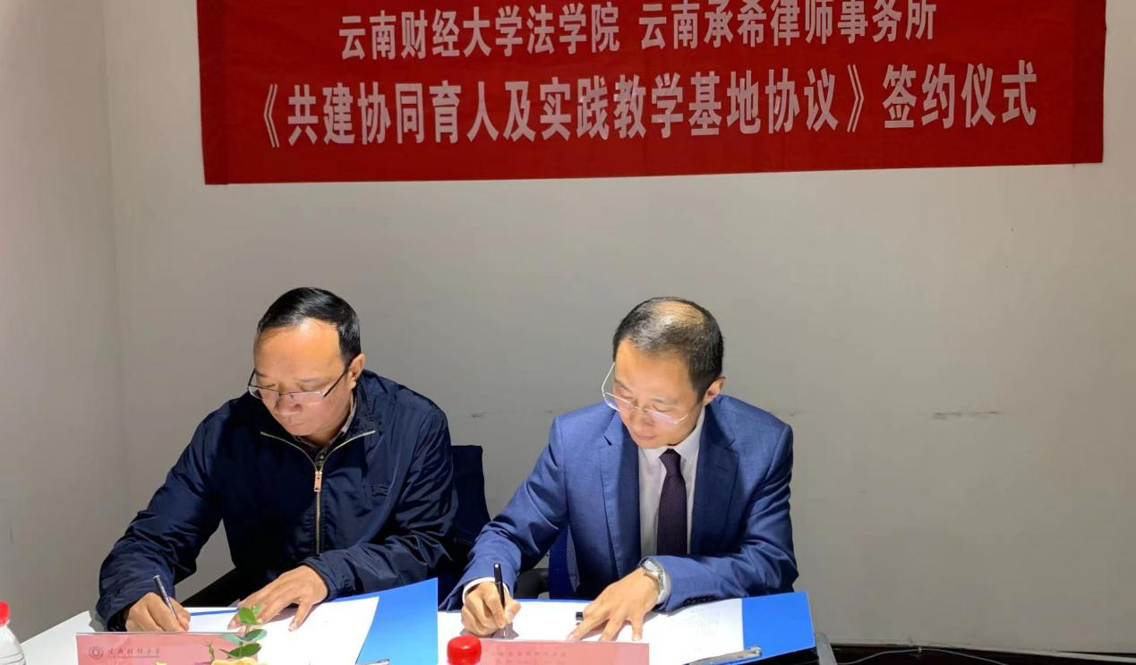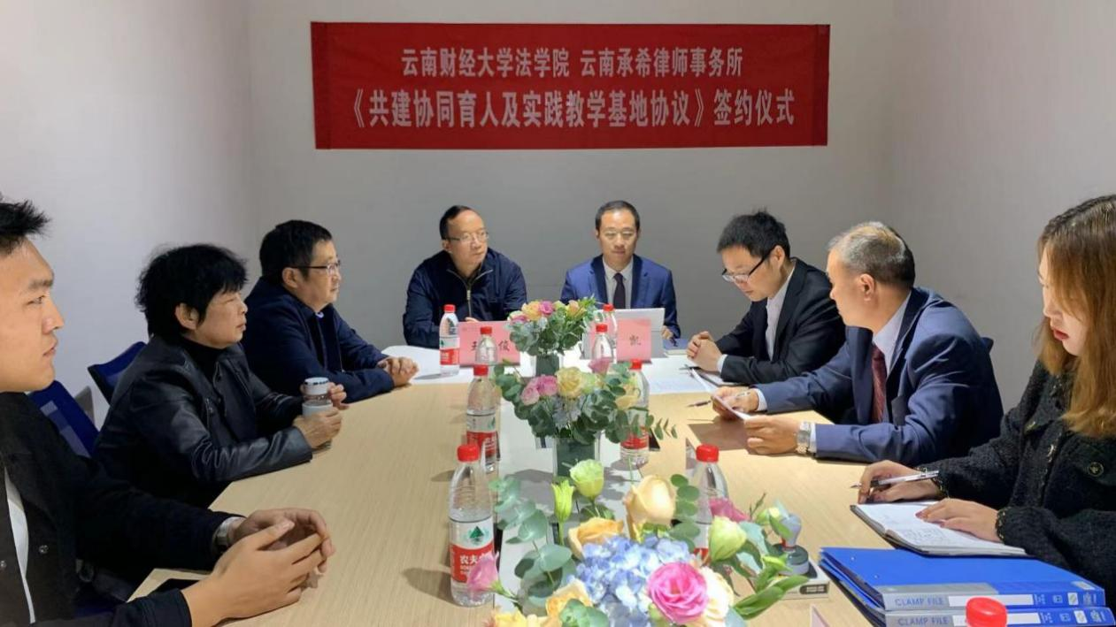 为深入贯彻落实习近平总书记关于法学教育和法治人才培养的重要指示精神,进一步强化学院实践教学基地建设,法学院于2021年10月20日,对校友企业云南承希律师事务所进行回访并签订《法学院实践教学基地共建合作协议》,法学院党委副书记王俊、副院长石现明教授、团委书记李浩、冯忠明教授参加回访。