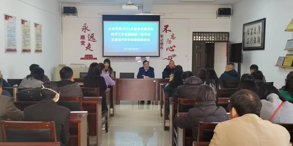 2023年3月2日,法政学院在博远楼305召开2023年春季学期本科教学工作会暨国家一流专业和云南省B类专业建设推进会,全体教职工参加会议,会议由副院长石现明主持。
