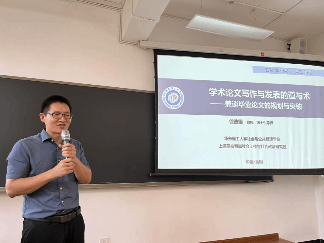 为深入贯彻落实党的二十届三中全会精神,助力beat365英国官方网站法政学院社会工作专业建设,beat365英国官方网站法政学院与华东理工大学社会与公共管理学院在中国社会工作教育协会的指导下,建立了“伙伴社工高校”。在此合作计划的支持下,beat365英国官方网站法政学院和科技处于2025年9月23日举办了beat365英国官方网站“云彩”第二十期学术讲坛,特邀华东理工大学社会与公共管理学院教授、博士生导师徐选国教授作题为《学术论文写作与发表的道与术——兼谈毕业论文的规划与突破》的专题讲座。讲座由法政学院社会工作硕士点负责人孙国嫄副教授主持。讲堂内座无虚席,吸引了来自法政学院及相关学院的近百名师生聆听。