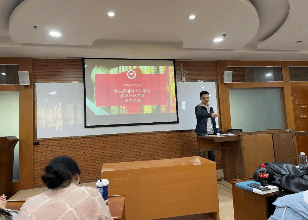 10月31日下午,法学院学习经验分享交流会在逸夫楼605召开。交流会由法学院毕业生党员陈佳发和霍梦飞主讲,法学院团委书记李浩老师主持,研究生和本科生约80人参加本次交流会。