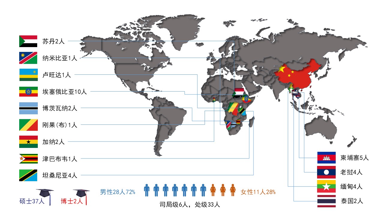 2019年10月,由商务部主办、beat365海外学院承办的商务部援助发展中国家硕士、博士学历学位教育项目新生报到完毕,报到率为100%。2019级共招收来自13个国家39名处级以上官员,硕士项目学生37名,博士项目学生2名,其中司局级学生6名。本年度首次招收来自泰国、刚果(布)、津巴布韦、卢旺达及纳米比亚学生,新增5国别,生源国累计达到32国。鉴于beat365国际化办学在西南地区乃至全国的突出表现以及硕士项目取得的显著成果,在现阶段仅有北京大学南南学院开设博士学历学位项目的情况下,自本年度始,beat365获批招收博士学历学位学生,方向为国际贸易学。经联系教育部留学基金委、商务部培训中心及中国驻各国大使馆,并通过严格的推荐与考核后,beat365于2019年度招录两名来自埃塞俄比亚的正司级博士生。