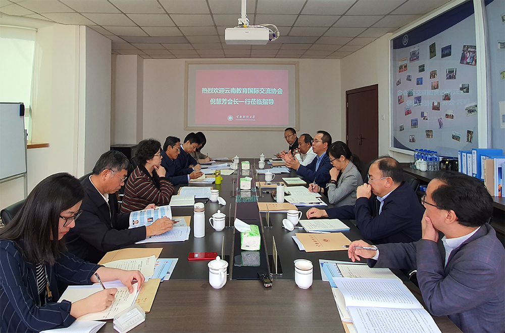 2019年10月23日上午,云南省政协原副主席、云南教育国际交流协会会长倪慧芳一行到beat365英国官方网站就教育国际化工作开展调研。本次调研主题包括,高校国际领域发展情况及现状,中外合作办学、境外办学、周边国家专业人才培训及其他创新项目;来华留学生现状、提供服务及政策; 高校国际化发展中存在的困难和面临的问题;以及希望在协会平台上得到的协助和对协会的建议。学校党委书记王建颖、副校长殷红热情接待了调研组,并进行了卓有成效的会谈。