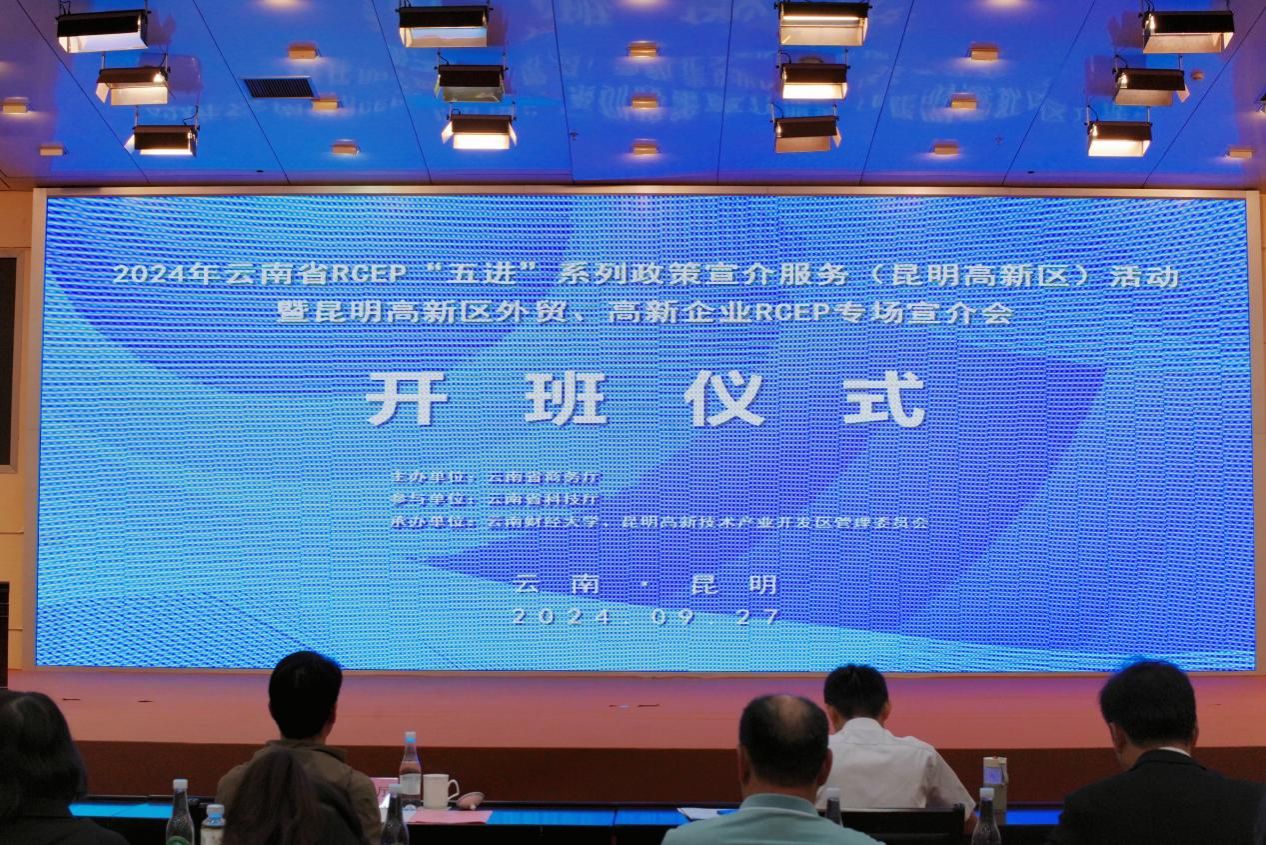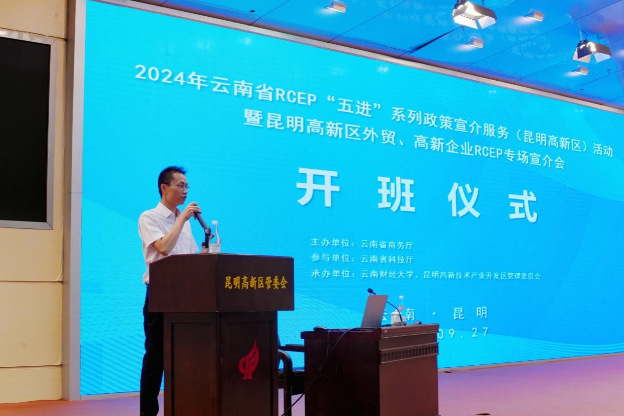 2024年9月27日,由云南省商务厅主办,云南省科技厅参与,beat365英国官方网站海外学院、昆明高新技术产业开发区管委会共同承办的2024年云南省RCEP“五进”系列政策宣介服务活动暨昆明高新区外贸、高新企业专场宣介会在高新火炬大厦举办。