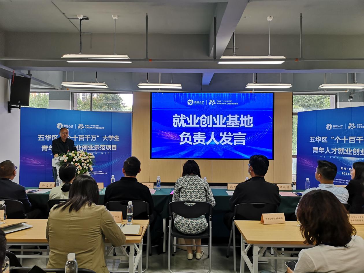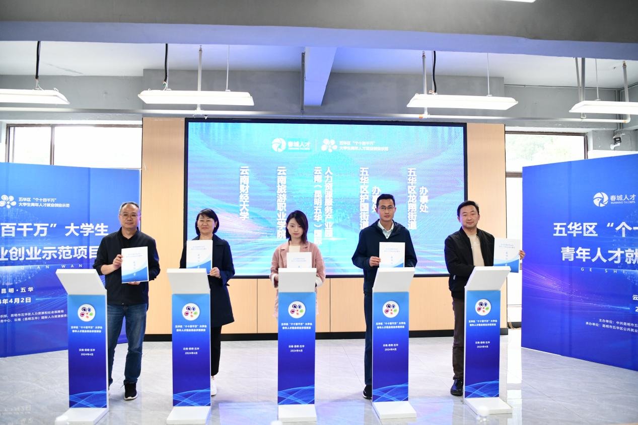 发布会上,省人才服务中心、市委组织部和市人社局、五华区委区政府和友脉控股集团有限公司相关领导共同启动五华区“个十百千万”大学生青年人才就业创业示范项目,发布人才项目标识。
