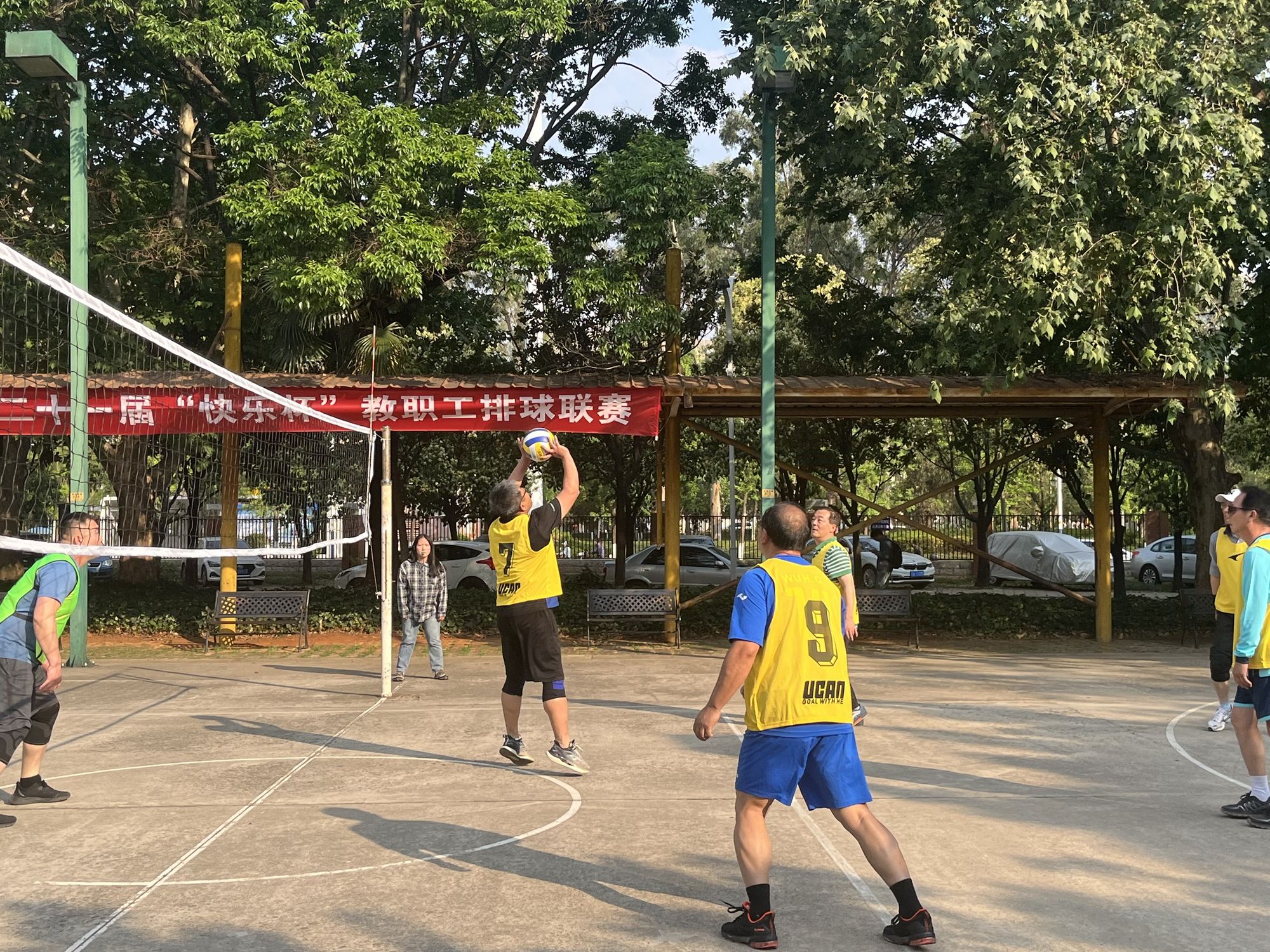 “快乐杯”排球赛是每年教职工最期盼的赛事。自开赛以来,比赛现场氛围热烈,各代表队纷纷拿出各自的“绝招”——发球、拦网、扣杀、一传、二传……每个环节都尽力发挥、严谨认真、努力拼搏;每一场比赛结束之后,又会互相打气加油、总结经验。比赛双方本着“友谊第一,比赛第二”的原则,在赛场上相互学习,奋力角逐。这不仅是一次普通的体育竞技比赛,更是提升教职工身体素质、增强团队合作能力的宝贵经历。教职工们从课堂、办公室、服务师生的一线岗位走到赛场,化身为积极拼搏的运动健将,展现了云财教职工奋勇拼搏的精神,增强了教职工的凝聚力和团队合作精神,营造出积极健康的校园文化氛围。