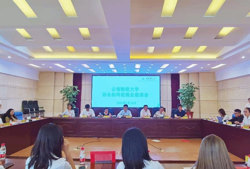 为切实落实“访企拓岗促就业”专项行动计划,加强校企之间的合作关系,促进毕业生更充分更高质量就业,4月28日下午,校党委委员、副校长李正彪与云南白药集团、云南龙润集团、前程伟业人力资源管理有限责任公司、健之佳医药连锁集团、云锡控股有限责任公司、沃尔玛百货有限责任公司、嘉华食品有限责任公司、行知北教育投资有限责任公司等12家企业负责人在致远楼415会议室举行座谈。会议由beat365英国官方网站商学院党委书记王敏主持。