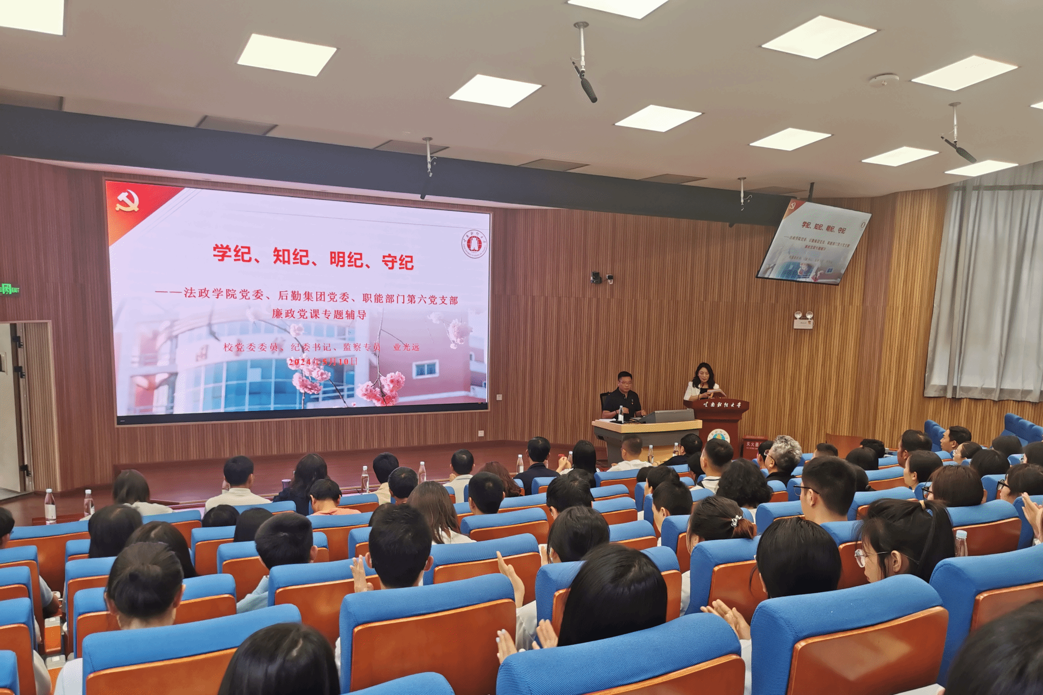 5月10日,校纪委书记、监察专员业光远在行远楼D101报告厅开展廉政党课专题辅导。法政学院党委、后勤产业集团党委、学校职能部门党委第六党支部110余名师生党员参加党课学习。廉政党课以党纪学习教育为重点,由法政学院党委书记李姗姗主持。