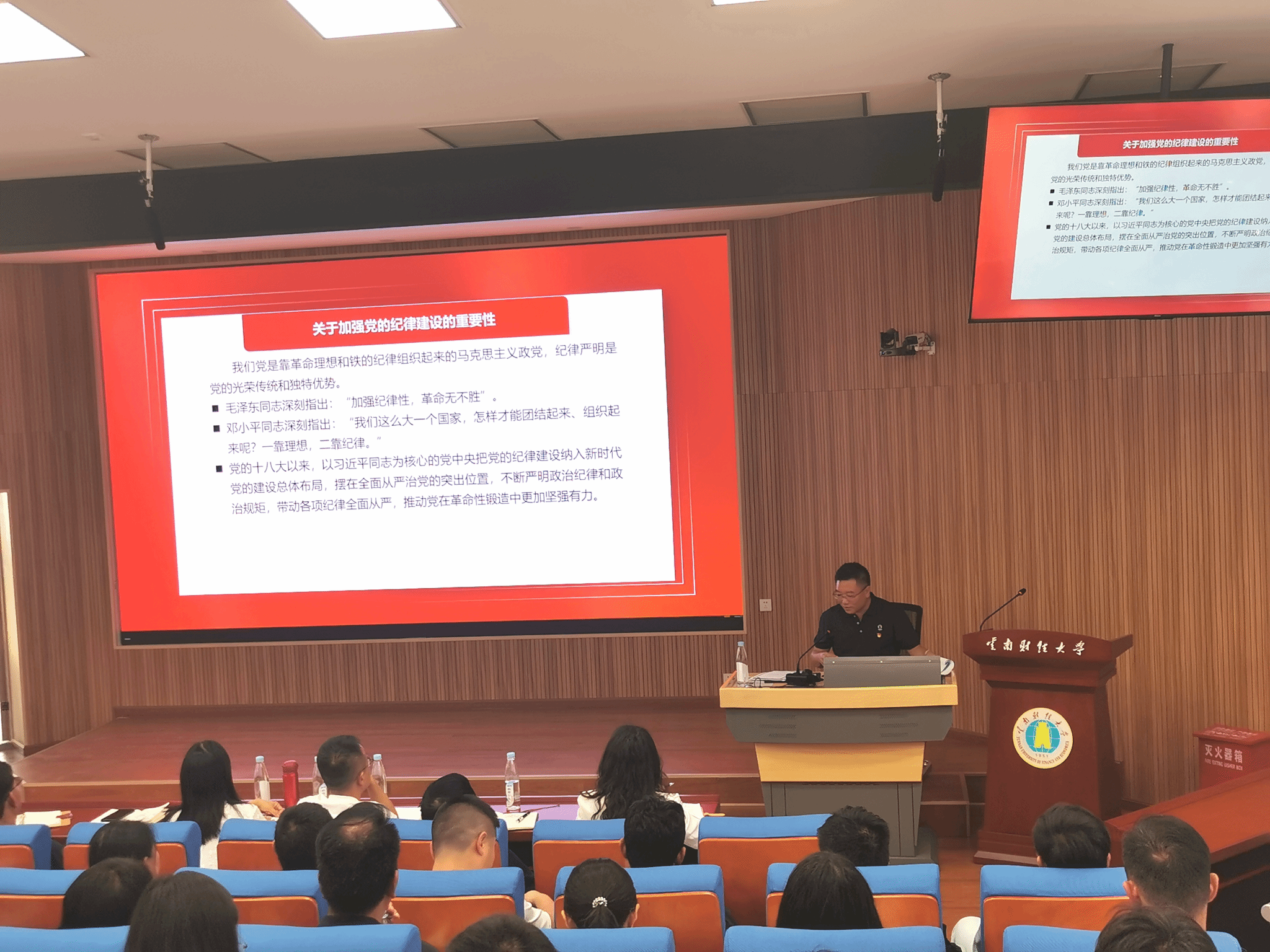 业光远以“学纪、知纪、明纪、守纪”为主题,围绕习近平总书记关于开展党纪学习教育的重要讲话和重要指示批示精神,党纪学习教育的重要性和必要性,学深学透《中国共产党纪律处分条例》,关于明纪、守纪的几点思考和建议四个方面,为师生党员上了一堂主题鲜明、重点突出、内容丰富、分析透彻的党课。