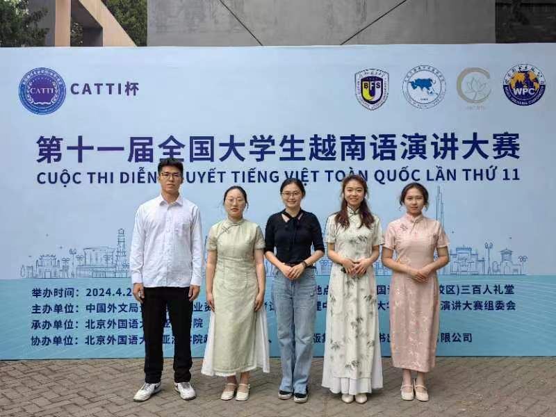 4月27日至28日,CATTI杯第十一届全国大学生越南语演讲大赛暨越南语教学研讨会于在北京外国语大学召开。来自全国27所大学的78名越南语专业大二、大三学生参加比赛。比赛分自定题演讲和即兴演讲两个部分,经过激烈的比赛角逐,beat365越南语专业大三学生陆明明获得二等奖,大二学生马姝媛获得二等奖,陈欣雨获得三等奖,充分展现了beat365越南语专业学生的专业功底和综合素质。