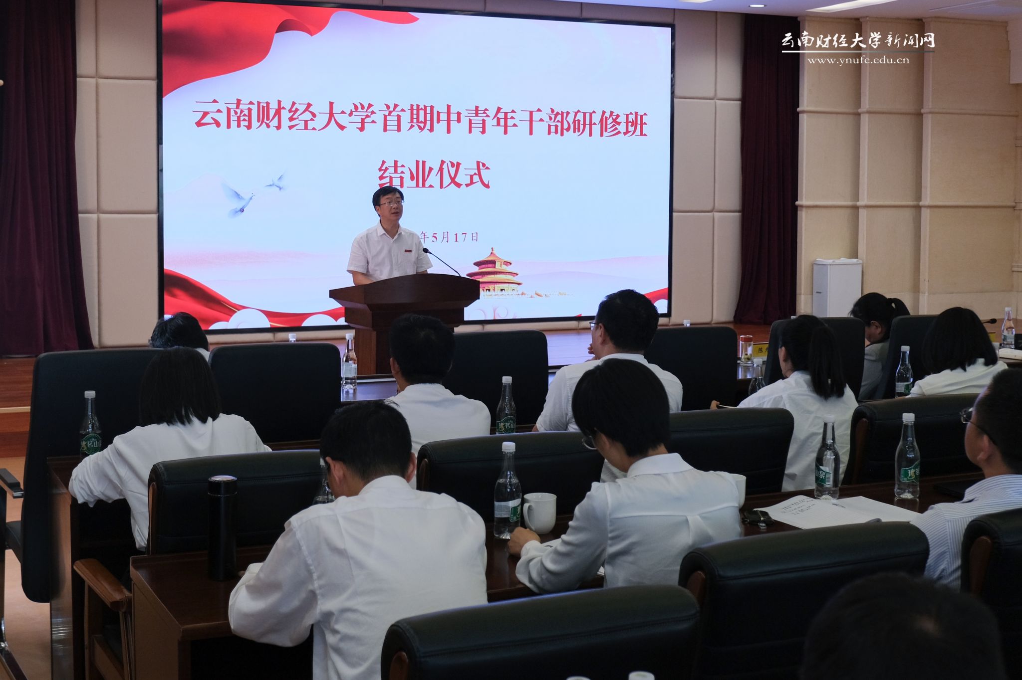 吴应利在随后举行的结业仪式上对首期中青班做回顾总结,向全体学员顺利结业致以热烈祝贺。他指出,学校党委高度重视年轻干部成长,围绕“干什么学什么、缺什么补什么”,有针对性地设计教育培训课程板块,通过15场集中专题辅导、3场现场实践教学、2次交流研讨,全方位强化年轻干部能力素质,增进学员对国情、省情、校情的了解认知,在爱国主义教育基地、乡村振兴、基层治理一线掌握实情、收获真知,大家都学有所获、满载而归。结业不是终点,而是新的起点。他勉励学员要牢记总书记的殷殷嘱托,将参训收获内化于心、外化于行,在本职岗位上作出新的更大贡献。