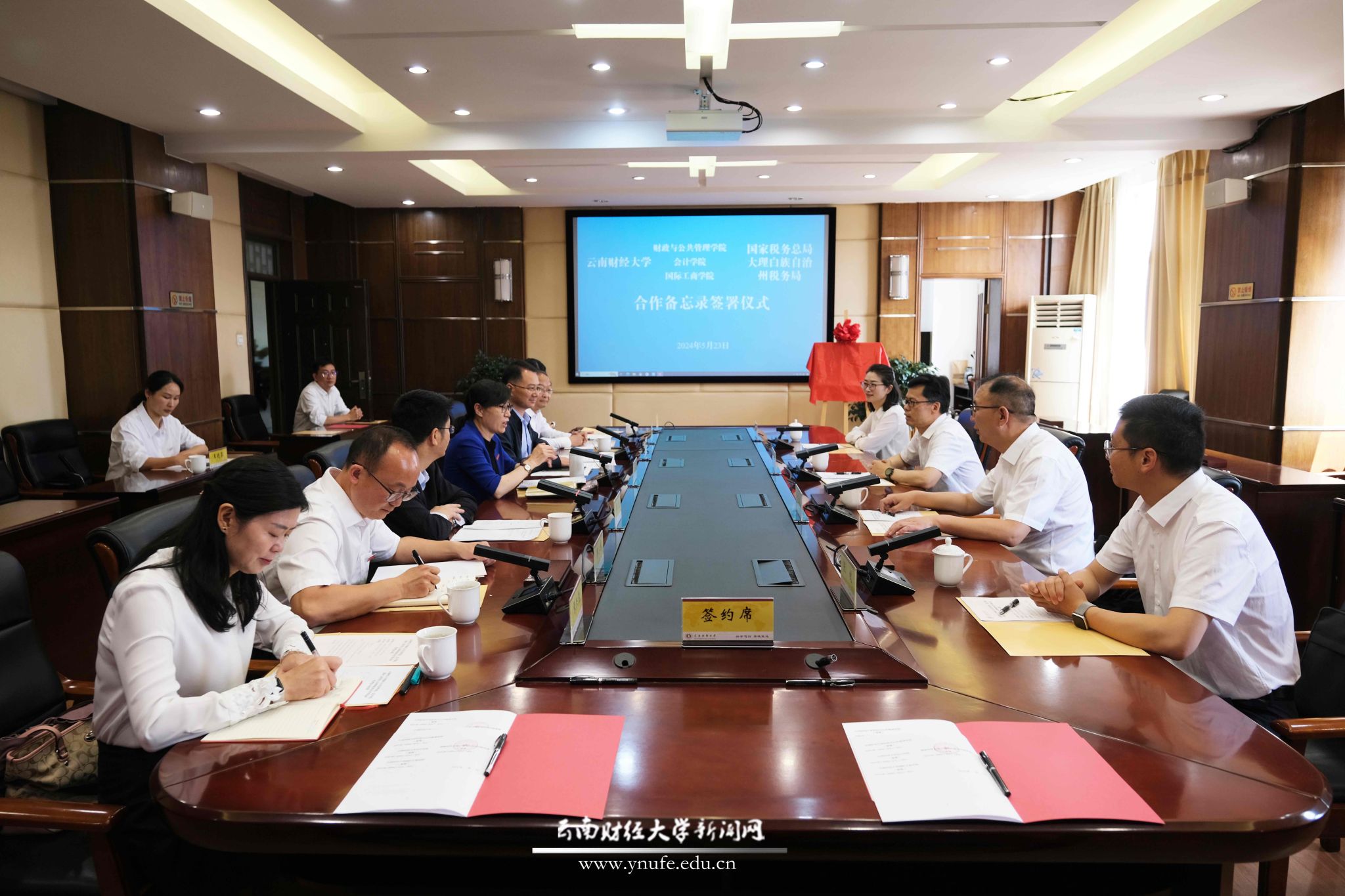 5月23日,学校财政与公共管理学院、会计学院、国际工商学院与国家税务总局大理州税务局举行合作备忘录签署仪式。